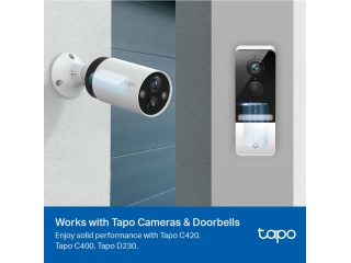 Compatible con equipos Tapo: Úsalo con las cámaras Tapo C420 y Tapo C400, y con el videoportero Tapo D230.