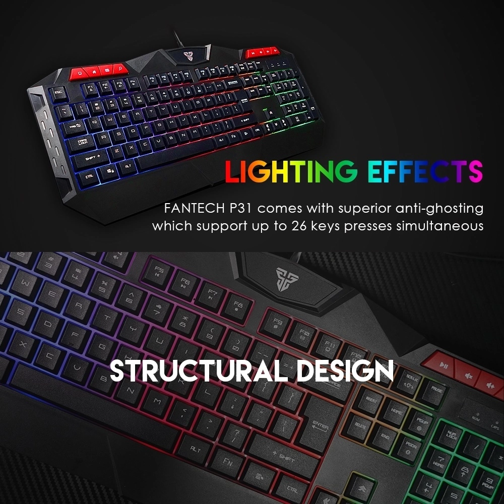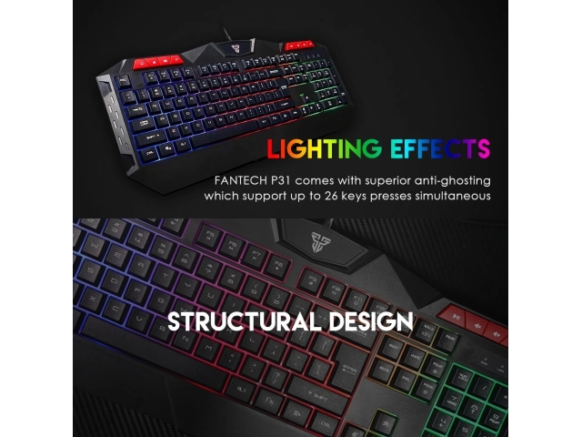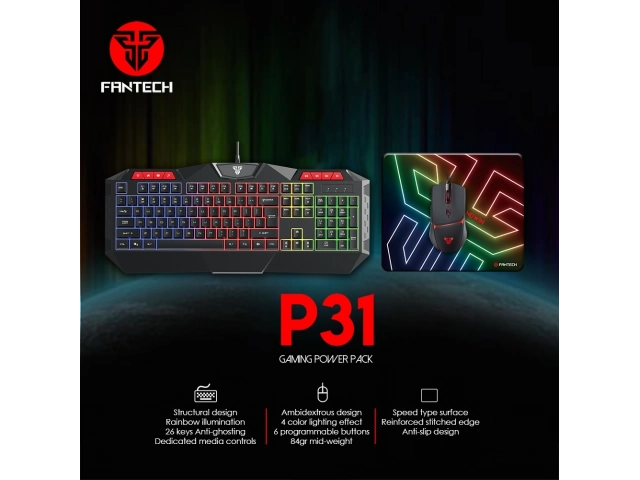 Kit, Gamer, Combo, 3 en 1, FANTECH, P31, RGB, USB, Teclado, Mouse, ratón, Mouse Pad, mousepad