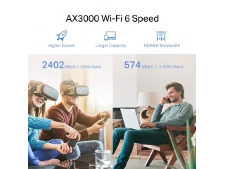 Dual Band WiFi 6: Separa las bandas WiFi de 5 GHz (2402 Mbps) y 2,4 GHz (574 Mbps) para velocidades más rápidas y mayor capacidad con la última tecnología.