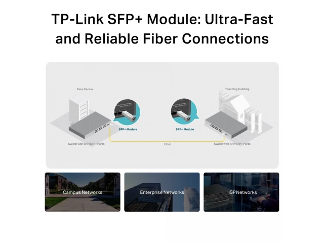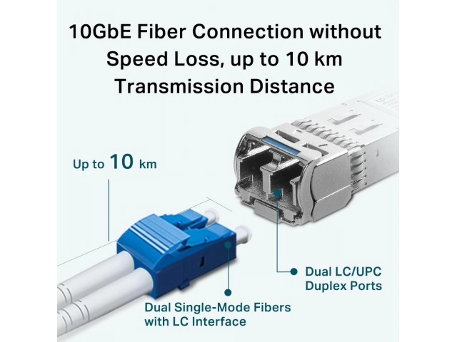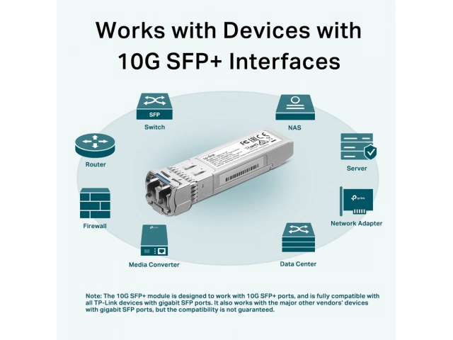 • Compatible con conmutadores con puertos 10G SFP +, como JetStream TL-SG3428X, TL-SG3428XMP y más.