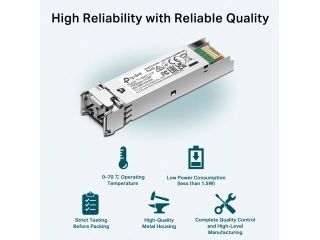 Marca: TP-LINK Modelo: SM311LS Tipo: Módulo MiniGBIC monomodo DDM: Sí SFP-MSA: Sí Intercambiables en caliente: Sí Estándares y Protocolos: IEEE 802.3z, CSMA/CD, TCP/IP Longitud de Onda: 1310 nm Fuente de Alimentación: 3.3 V Seguridad y Emisión: FCC, CE Cable: Fibra monomodo Tipo de Fibra: 9/125 mu m monomodo Máx. Longitud de Cable: 20 km Tasa de Dato: 1.25 Gbps Tipo de Puertos: LC/UPC