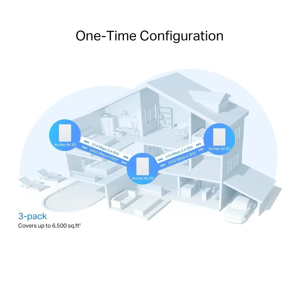 Router, TP-Link, Archer Air R5, |AX3000, WiFi 6, Dual Band, 5 GHz, 2402, 2.4 GHz, 574 Mbps, Puertos Gigabit, Pack x3