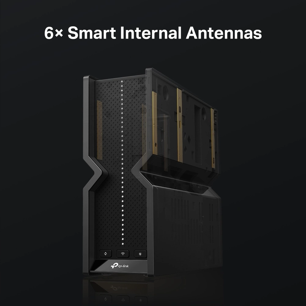 Tri-Band. 6 GHz (5760), 5 GHz (22882), 2.4 GHz (688 Mbps). Puertos LAN. 6 Antenas de Alto Rendimiento.