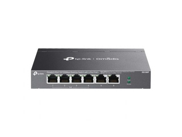 Switch, Omada, DS106P, 6 puertos 10/100 Mbps, PoE+ 4 Puertos , No Administrable, Carcasa Metálica