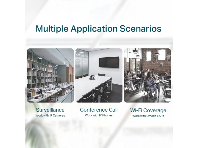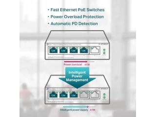 • Admite alimentación PoE de hasta 41 W para todos los puertos PoE.