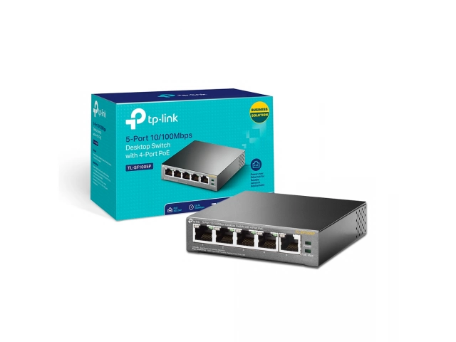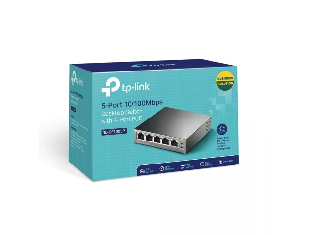 Marca: TP-LINK Modelo: TL-SF1005P Tipo: Switch 5 puertos 10/100 PoE Puertos: 5 x Puertos RJ45 10/100Mbps (4 de ellos PoE) PoE: Hasta 15.4W por puerto (Total hasta 58W) Estandar: 802.3af Carcasa: Metálica