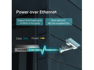 - 8 puertos RJ45 a 10/100 Mbps (4 de ellos son PoE que transfieren datos y energía en un solo cable).