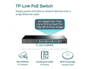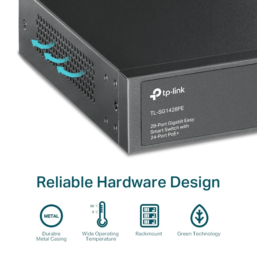 Switch TP-LINK TL-SG1428PE | 26 Puertos Gigabit (24 PoE af/at), 2 Puertos Gigabit SFP, Easy Smart