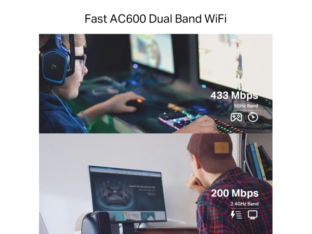 WiFi de doble banda AC600: aproveche al máximo su red con velocidades de Wi-Fi de hasta 600 Mbps (433 Mbps en la banda de 5 GHz y 200 Mbps en la banda de 2,4 GHz).