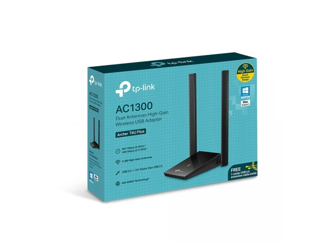 T4UPLUS, Adaptador, Inalámbrico, wireless, USB, TP-LINK, Archer, T4U Plus, AC1300, Alta Ganancia, Dual Band, 5 GHz, 867 Mbps, 2.4 GHz, 400 Mbps, USB 3.0
