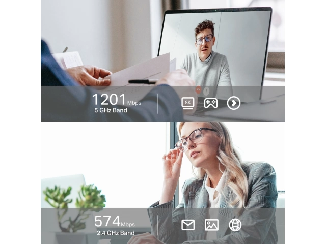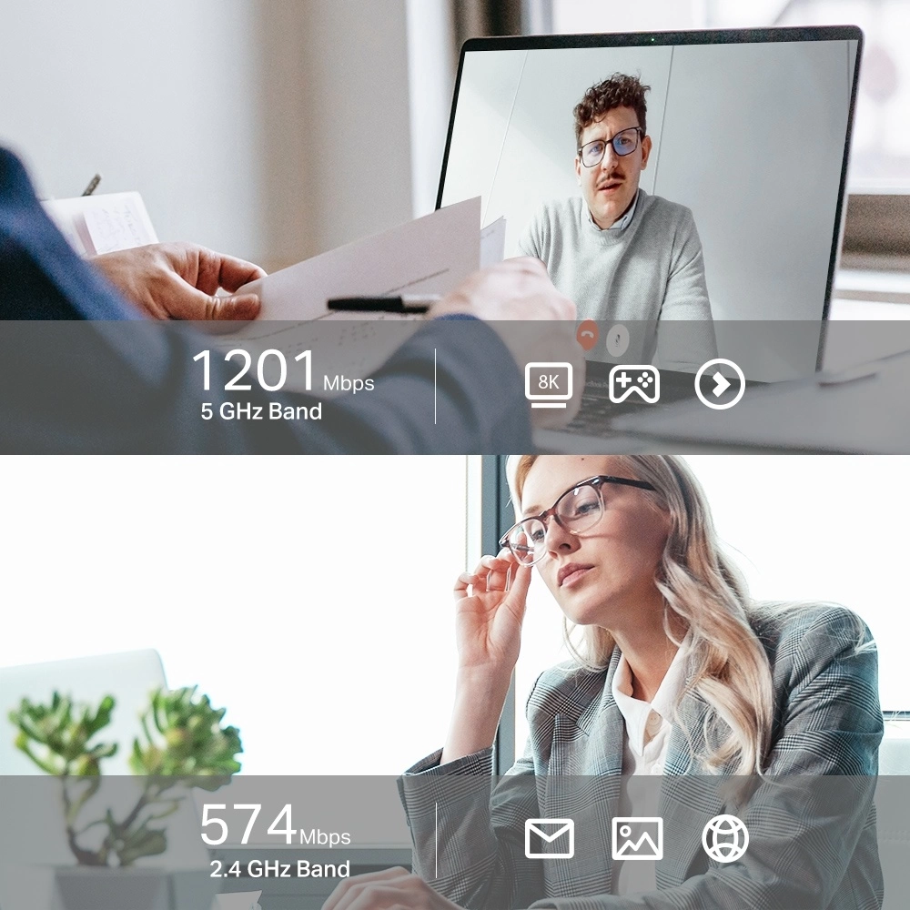 Fast WiFi 6: Rompe la barrera de los gigabits con velocidades de hasta 1201 Mbps (5 GHz) + 574 Mbps (2,4 GHz).