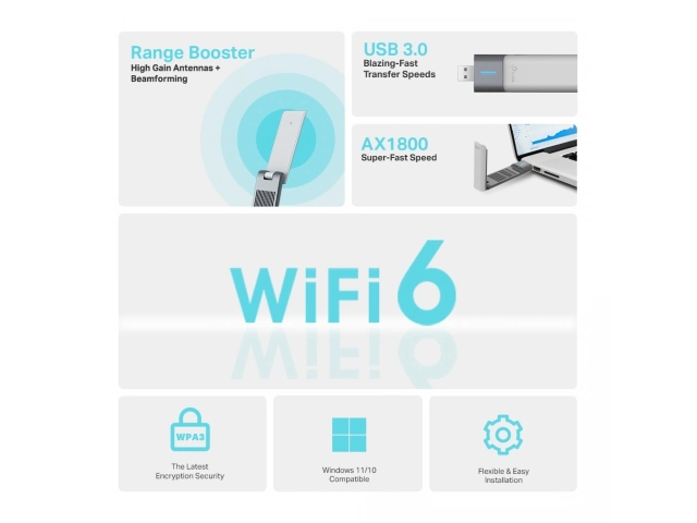 Wireless, Adaptador, Inalámbrico, USB, TP-LINK, Archer TX20UH, AX1800, Alta Ganancia, Dual Band, 5 GHz, 1201 Mbps, 2.4 GHz, 574 Mbps, USB 3.0, WiFi 6