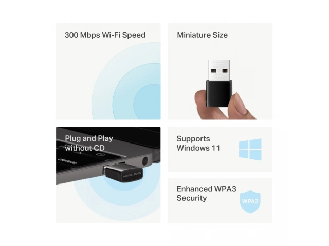 Wireless, Adaptador, Nano, USB, MERCUSYS, MA12N, N300, WiFi, 300Mbps, Frecuencia, 2.4Ghz, tarjeta de red