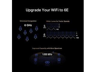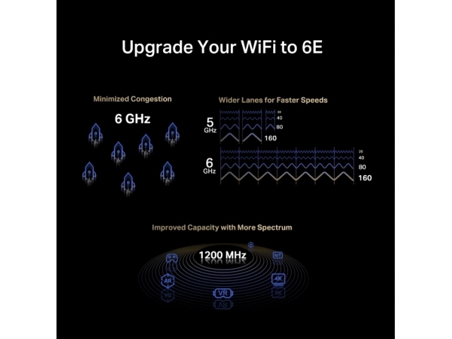 Velocidad de tres bandas imparable:  Velocidades de hasta 2402 Mbps (6 GHz) + 2402 Mbps (5 GHz) + 574 Mbps (2,4 GHz)
