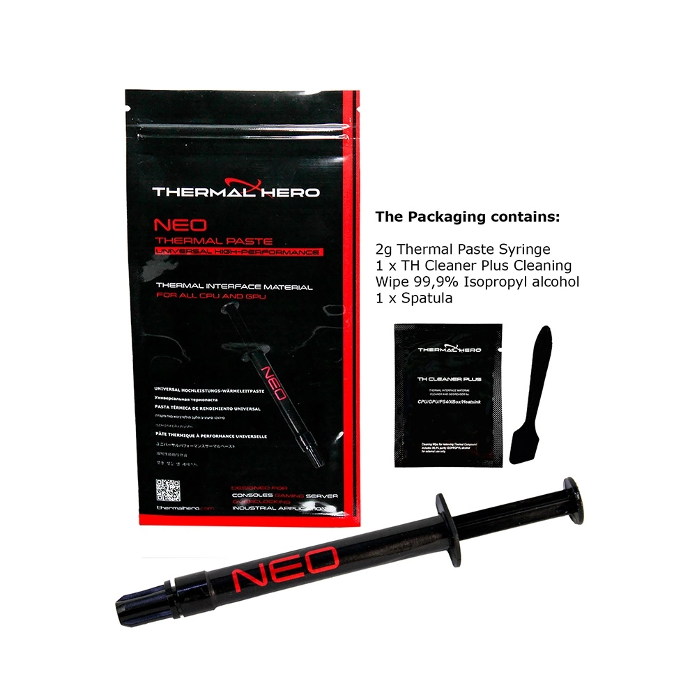 Facilidad de Aplicación: Gracias a su formulación a base de silicona, la pasta térmica Thermal Hero NEO es fácil de aplicar sin problemas de pegajosidad ni excesiva expansión. Esto facilita el proceso de aplicación, garantizando una cobertura uniforme para un rendimiento térmico óptimo.