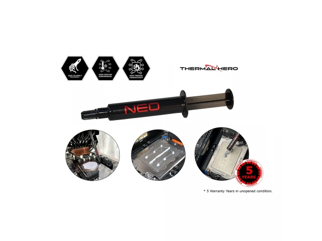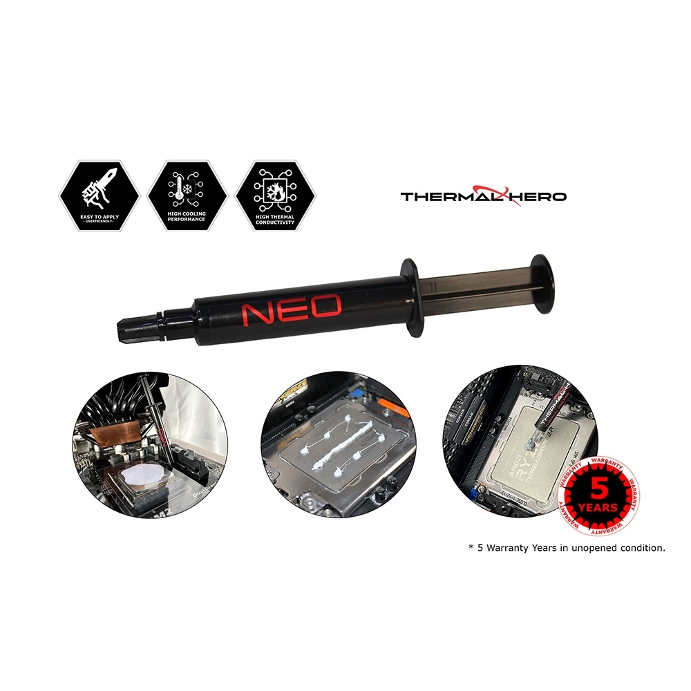 Facilidad de Aplicación: Gracias a su formulación a base de silicona, la pasta térmica Thermal Hero NEO es fácil de aplicar sin problemas de pegajosidad ni excesiva expansión. Esto facilita el proceso de aplicación, garantizando una cobertura uniforme para un rendimiento térmico óptimo.