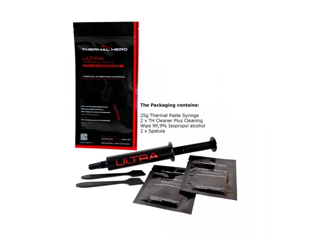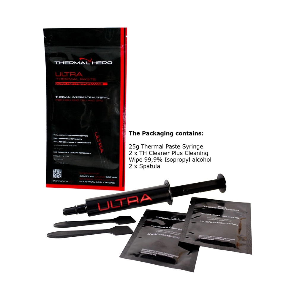 Rendimiento de Enfriamiento Ultra Alto: La pasta térmica Thermal Hero ULTRA destaca por su excepcional capacidad de enfriamiento, gracias a su resistencia térmica muy baja y alta conductividad térmica. Esto la hace ideal para mantener temperaturas óptimas incluso en condiciones de alta demanda de CPU.