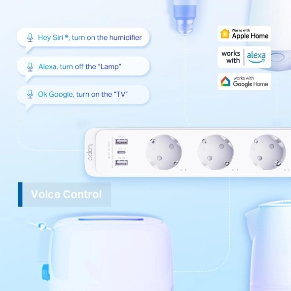 Control individual: Controle por separado 3 enchufes inteligentes en la zapatilla mediante una aplicación o comandos de voz.