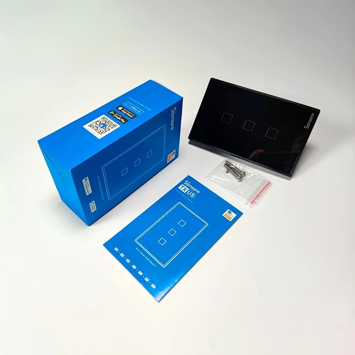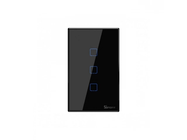 Interruptor, Inteligente, smart, Pared, Sonoff, T3US3C-TX, WiFi, RF, Táctil, touch, 3 Pulsadores, negro