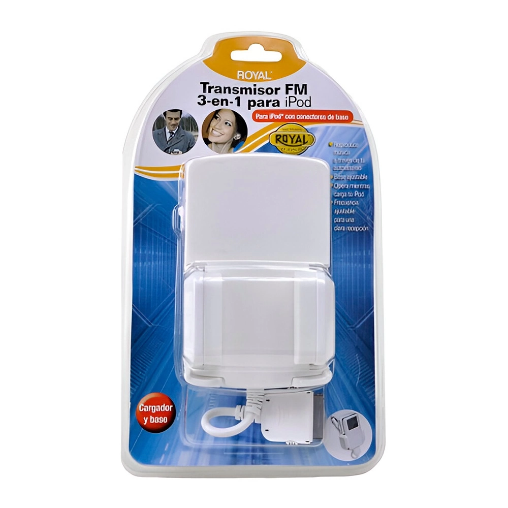 - Kit cargador de coche para iPod Royal Transmisor FM 3 en 1.