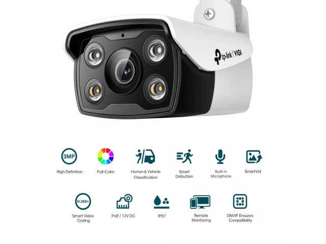 Cámara, Bullet, IP, TP-LINK, VIGI, C330, 3MP, Visión Nocturna, Exterior, Micrófono integrado, Rango de giro/inclinación, -90º a 90º, Panorámica, -90º a 90º, Inclinación