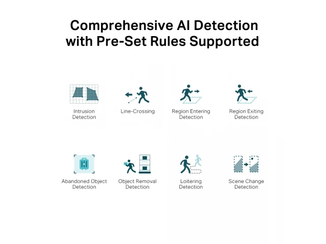 Detección inteligente: Detecta de forma activa eventos extraños, como intrusiones en zonas o cruces de líneas, y le envía notificaciones al instante.