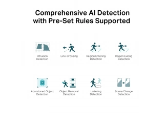 Detección inteligente: Reciba notificaciones y verifique las fuentes cuando alguien cruza un límite, ingresa a un área que ha establecido, obstruye la cámara o elimina/abandona objetos.
