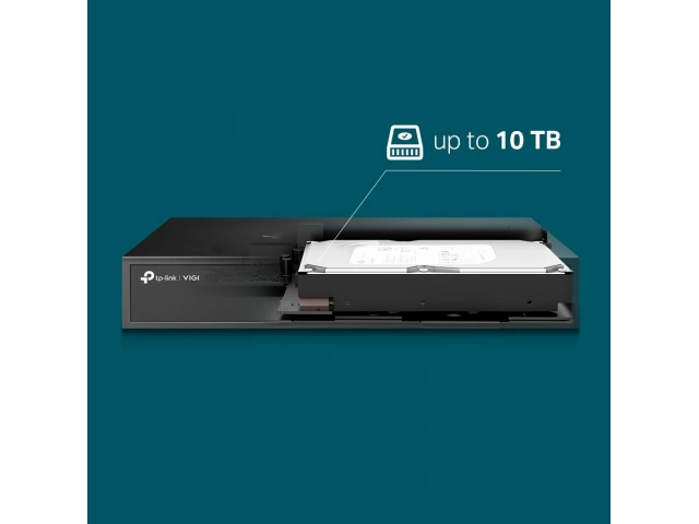 Ancho de banda de acceso de video de 80 Mbps: El ancho de banda de acceso de video alto garantiza que su NVR conecte más cámaras con alta resolución. Según las pruebas de laboratorio que utilizan cámaras VIGI, VIGI NVR puede conectar hasta ocho cámaras de 4MP.
