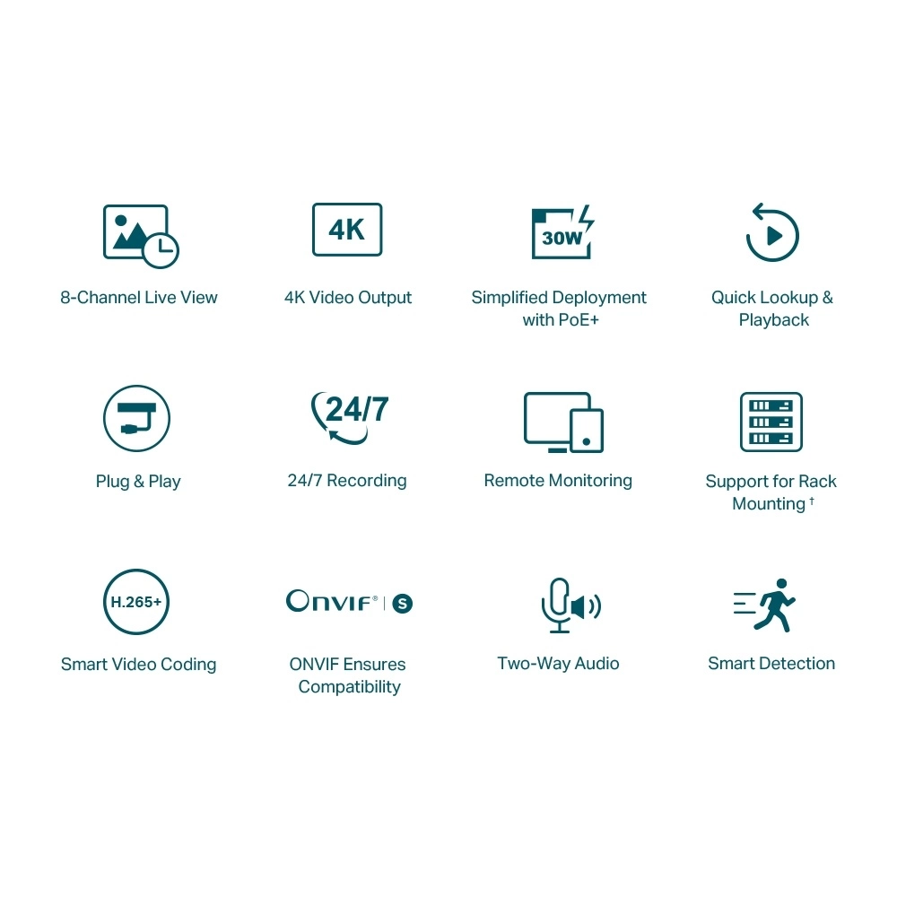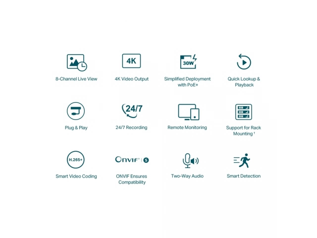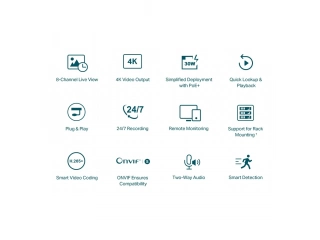 Salida de Video HDMI 4K y Capacidad de Decodificación de 16MP: La definición de imagen de hasta 8MP y una pantalla de 8 canales garantizan capturar cada detalle, desde todos los ángulos.