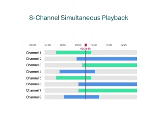 Reproducción Simultánea de 8 Canales: Reproduce la señal de hasta 8 cámaras al mismo tiempo. Aumente la velocidad de reproducción y encuentra eventos para revisar más fácil y rápidamente cada uno de los vídeos.