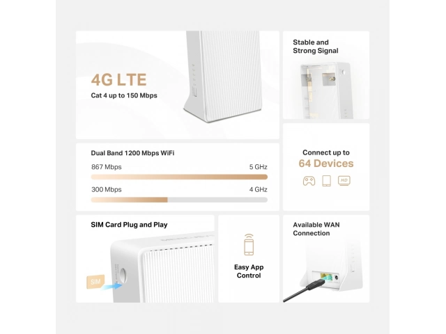 - Router Inalámbrico 4G LTE de doble banda AC1200 (MB130-4G)
